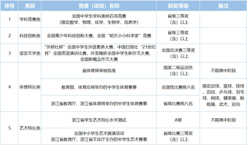 (注:以下成果均须在高中阶段取得,特别注明“不限高中阶段”除外)